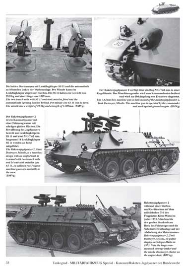 Die eingeführten Waffensysteme Rakatenjagdpanzer 1 HS 30 (Jagdpanzer-Rakete 3-3), dessen Nachfolger Raketenjagdpanzer 2 und dessen Weiterentwicklungen Jaguar 1 werden in Text und Bild ausführlich vorgestellt.