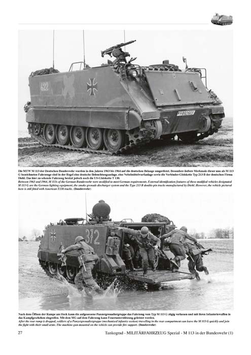 Ab Seite 26 geht es dann um die germanisierung der M113 - ab 1963 wurden die gelieferten M113 auf deutsche Belange umgerüstet wie neue Kette, Beleuchtungsanlage, etc. Die Bezeichnung wechselte zu M113G.