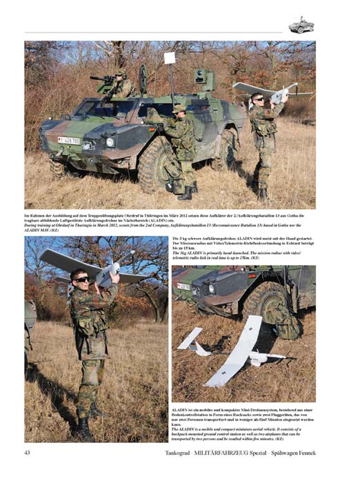 Desweiteren wird die ALADIN Drohne und auch die BSA die im Fennek mitgeführt wird in Fotos und text vorgestellt.