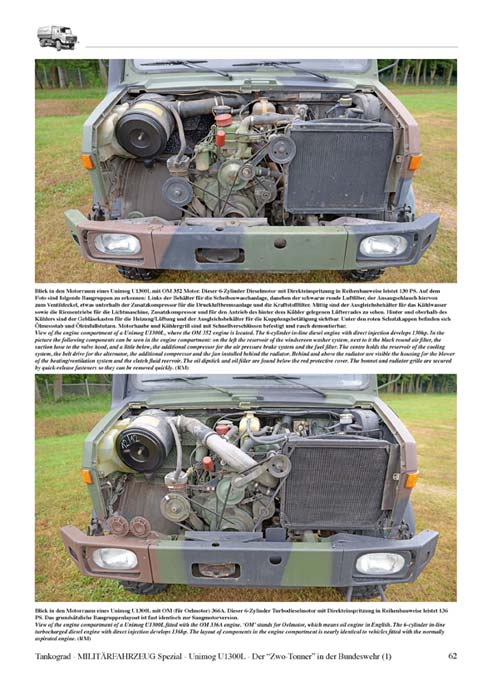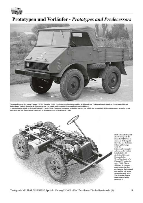 Das Heft beginnt mit 6 Seiten zur Entwicklungsgeschichte des U1300 in der Bundeswehr mit allen Planungen Anforderungen, Prototypen und letztlich der Serienfertigung mit Änderungen, Einsatz und Ablösung. Es folgen 16 Seiten mit Fotos der entsprechenden Vorgängerversionen und Prototypen.