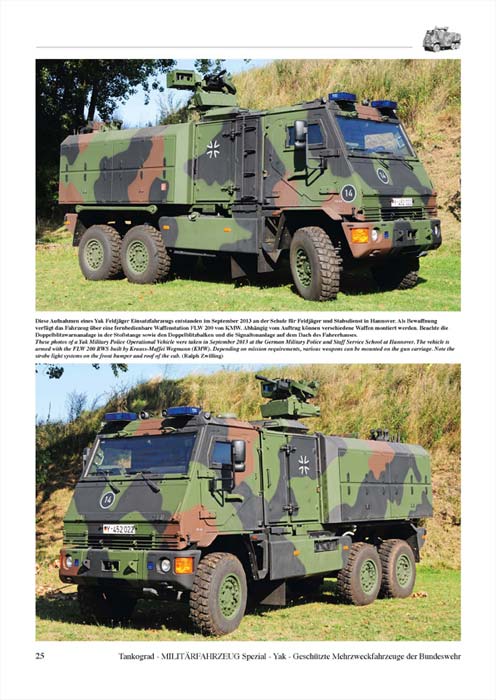Die folgenden 6 Seiten beschäftigen sich mit dem Yak im Feldjägereinsatz. Dieses wird ebenfalls auf einer ganzen Seite mit text behandelt und den rest mit schönen Fotos des Fahrzeugs mit FLW200. Auch hier sind Bilder aus dem Innenraum zu sehen.