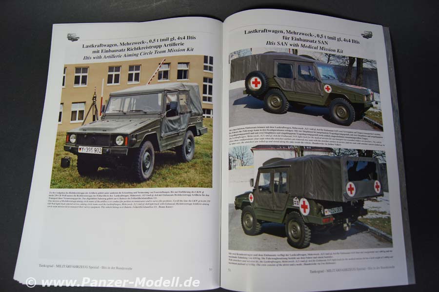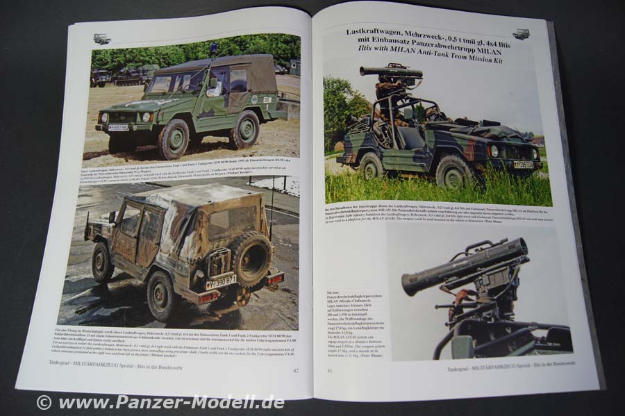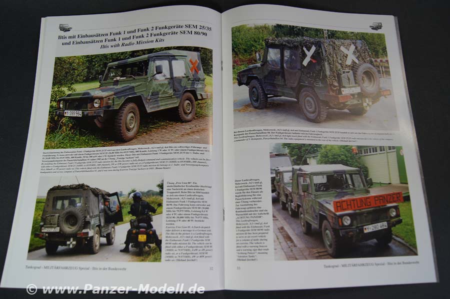 Aus dem Hause Tankograd erreicht uns ein neues Heft, es behandelt den Iltis von VW, der iltis wurde ab 1978 in die BW eingeführt uns sollte den in die Jahre gekommen Munga ablösen. Das Heft selbst ist wie folgt aufgebaut; auf 5 Textseiten ist in Deutsch und Englisch die Enstehung des Iltis, Einsatz und Verwendung beschrieben. Danach folgt auf 6 Seiten Bilder des Prototypen und der Vorserie. Auf den folgenden Seiten befindet sich die technische Beschreibung wie Elektrik, Ausstatung, Motoren usw. diese gliedert sich auf 3 Textseiten und 12 Fotoseiten mit erklärenden Bildunterschriften. Das restliche Heft gliedert sich Bildern mit Bildunterschriften in die verschieden Ausführungen. Den Abschluß auf 7 Seiten widmet der Autor dem Sinsatz in verschiedenen Heeren wo der Iltis im Einsatz war. Als Fazit sei gesagt das auf 64 Seiten dem geneigten Modellbauer/Militärfahrzeuginteressierten hier eine geballte Information vorliegt die mit 14,95 absolut im Rahmen liegt.