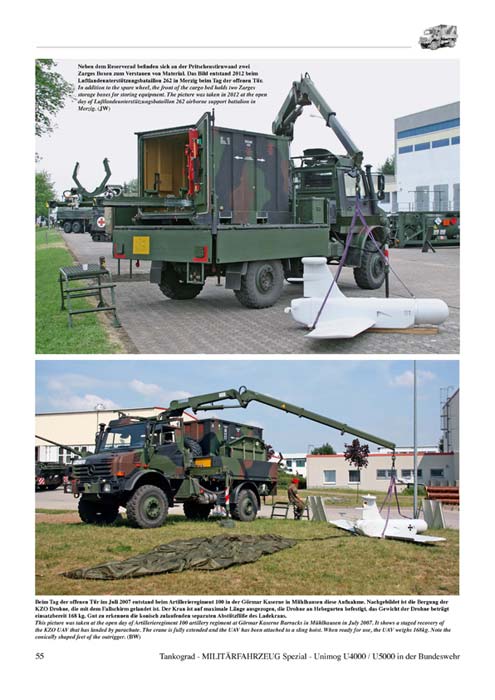 Aus dem Hause Tankograd erreicht uns ein neues Heft, es behandelt die neuen Unimogs U4000 und U5000 die auf lange Sich die alten 1300er ersetzen werden.. Danach folgen diverse Kapitel, die jeweils U4000 und U5000 in verschiedenen Ausführungen zeigen. Die Fotos sind allesamt in Farbe und von guter Qualität. Texte und Fotounterschriften sind informativ und zweisprachig deutsch/englisch ausgeführt. Auf 64 Seiten bekommt man hier einen schönen Überblick über die zur Zeit gebräuchlichen Versionen dieser Unimog Baureihe bei der Bundeswehr, die mit 14,95 absolut im Rahmen liegt.