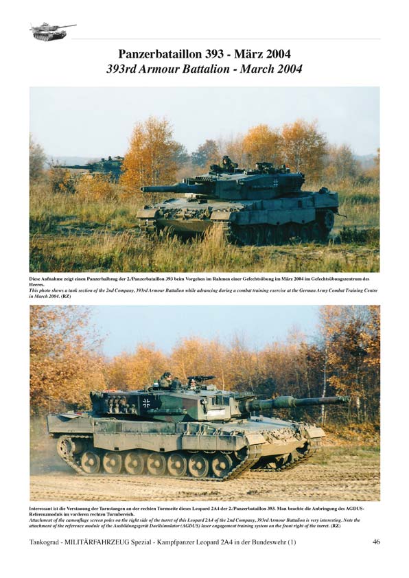 Weitere 19 Seiten zeigen dann den Leo 2 im Einsatz im Gefechtsübungszentrum - hier werden die Raubkatzen vom PzLBtl.334, PzBtl.393 und 154 zu verschiedenen Zeiten gezeigt. Und natürlich die Heimmannschaft des GÜZ die auch mit Leopard 2 A4 ausgerüstet waren.
