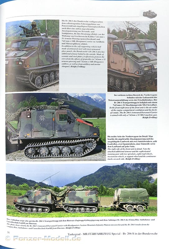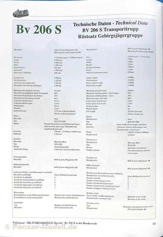 Danach werden die jeweiligen Versionen des BV206S behandelt und in guten Fotos und Text detailliert vorgestellt.