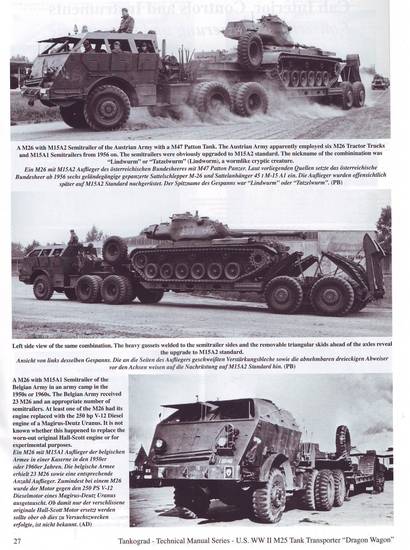 Das Heft No. 6017 - U.S. WW II M25 Tank Transporter Dragon Wagon aus der "Technical Manual Series" widmet sich in erster Linie den unterschiedlichen Baugruppen der Fahrzeuge, dazu werden Bilder und Zeichnungen aus technischen Vorschriften angeführt.