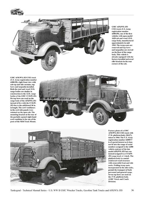 Die Technical Manual Series von Tankograd beschäftigt sich im vorliegenden Band mit den GMC 6x6 Trucks der US Armee, wie sie im 2.Weltkrieg im Einsatz waren. Dies betrifft die Wrecker, Tank und AFKWX-353 Coe Trucks.
