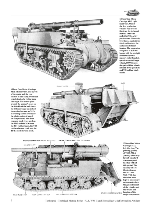 Autor: Michael Franz 48 Seiten (+3) mit 2 Farbphotos und über 150 schwarz-weiß Photos, Skizzen, Zeichnungen Die Technical Manuals Serie von Tankograd Publishing kommt hier mit dem 30. Band, diesmal über Selbstfahrlafetten der U.S. Artillerie, wie sie im 2. Weltkrieg als auch später im Korea krieg Anwendung fanden. Die Mischung aus Einsatzphotos, Bedienungsanleitung und technischen Erklärungen mit englischem Text zieht einen wieder magisch an. Das Heft besteht diesmal aus 2 Teilen. Die ersten 19 Seiten beschäftigen sich mit der Selbstfahrlafette M12 und dem Munitionsträger M30, der auf dem gleichen Fahrgestell basiert. Geschichte, Beschreibung, Produktionszahlen und technische Daten finden Platz auf 2 Seiten. Der Fototeil startet mit den interessanten Prototypen von Christie und von Holt, bevor man auf die Idee kam, das Fahrgestell des M3 Lee umzubauen. Dann gibt es wieder etliche Mehrseitenansichten mit Erklärungen von Bauteilen, Einsatzfotos. Die letzten 4 Seiten beinhalten zum einen erklärende Fotos von Bedienelementen und Instrumententafel des Fahrers, Getriebe, Motor- und Motorraum, zum anderen Bewaffnung, Optiken und Munition und einen Einblick in den Laderaum des M30. M40 und M43 beherrschen den 2. und größeren Teil. Die vordere Innenseite des Umschlages zeigt 2 Farbfotos eines M40 im Museum und eines M40 in Korea beim Verladen auf einen Pacific Panzertransporter. Wie beim M12 kommen Geschichte, Beschreibung, Produktionszahlen und technische Daten mit 2 Seiten aus. Der Bildteil startet mit den Prototypen sowohl mit der 155mm Kanone als auch mit der 203mm Haubitze. Hier ist der Vergleich der Heckansichten zwischen Prototyp und Produktionsfahrzeug interessant. (Somit ist mir klar geworden, dass sich der M40 von AFV-Club auf ein Produktionsfahrzeug bezieht.) 2 Fotos aus den Piloteinsätzen in Deutschland im Frühjahr 1945 setzen die Fotoreihe fort, gefolgt von Mehrseitenansichten, einem Querschnitt längs des Fahrzeuges, Illustrationen mit Beschreibungen der Bauteile und Aufnahmen aus dem Einsatz in Korea (beim Laden der Kanone, Feuerstellung, Fahrstellung). Bedienelemente und Instrumente des Fahrers, Motor und Motorraum, sowie Kraftübertragung und Laufwerk sind auf je 1 Seite näher beschrieben, die Wanne mit der Aufnahme für die Lafette, Verzurrungen, Heckrampe usw. auf 4 Seiten. Die letzten Seiten vor dem Quellennachweis widmen sich der Bewaffnung, der Munition und den Optiken. Ein kleiner Teil ist dabei der Funkausstattung vorbehalten. Bei Tankograd Heften anderer Serien sind die Fotos detailliert erklärt, so auch hier wieder! Deutschen Text sucht man vergeblich. Englischkenntnisse sind nötig, will man die Beschreibungen und Erklärungen verstehen. Ein tolles Heft, dass mich meine M12 und M40 Modelle mit anderen, wissenden Augen sehen lässt. Direkt ab Verlag zu einem Preis von EUR 9,90 (zzgl. Versandkosten) erhältlich! |