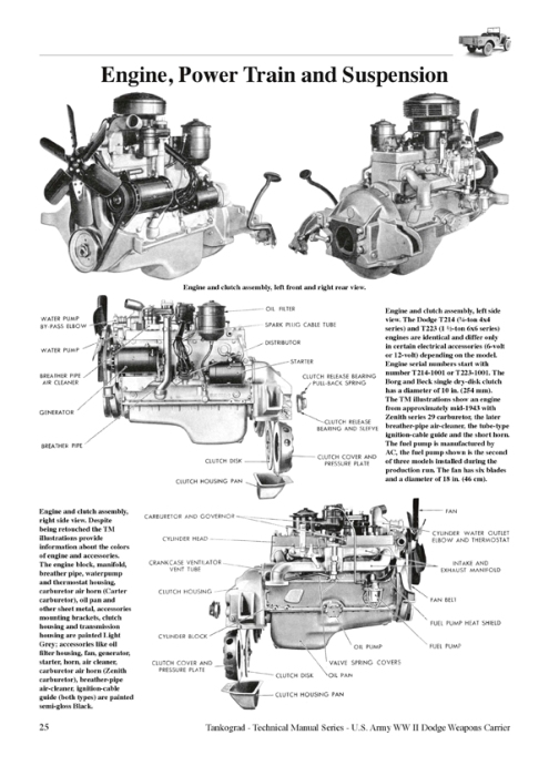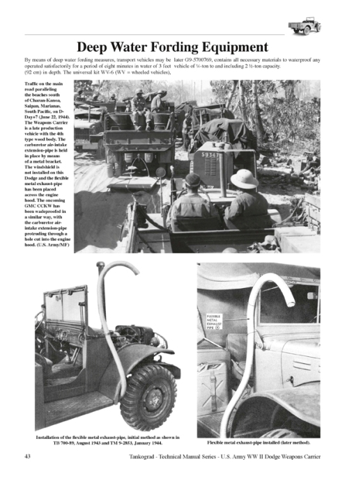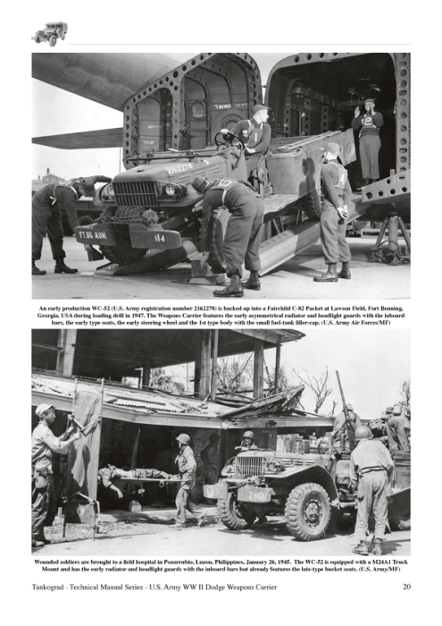 U.S. WW II Dodge ¾-ton 4x4 WC-51 & WC-52 Weapons Carrier Autor: Michael Franz 48 Seiten (englischer Text) mit 2 Farbphotoseiten und über 150 schwarz-weiß Photos, Skizzen und Zeichnungen Heft Nr. 6031 der Technical Manuals Serie von Tankograd Publishing beschäftigt sich mit dem Dodge ¾-ton in den Varianten WC-51 Weapons Carrier und WC-52 Weapons Carrier w/ winch. Der Bildteil enthält sowohl Einsatzphotos aus dem 2. Weltkrieg, alsbauch aus dem Korea Krieg. Auszüge aus Dienstvorschriften, Bedienungsanleitungen und technischen Erklärungen geben tiefe Einblicke in die Technik der Fahrzeuge. Auf 3 Textseiten erfährt man etwas über die Geschichte und Entwicklung des Fahrzeugs. Dazu gehören auch Auflistungen der US Army Registrierungsnummern und Tabellen mit technischen Daten und Produktionszahlen. Dem folgen 17 Seiten mit Fotos aus Produktion und Erprobung, von Einsätzen im 2. Weltkrieg in Europa und Asien und auch dem Korea Krieg. Und dann geht es auch schon ins Detail. Auszüge aus Dienstvorschriften erklären Instrumente und Bedienelemente im Fahrerbereich, Motor, Motorraum und Fahrgestell werden genauestens bezeichnet. So auch Getriebe und Federung. Sitze, Aufbau und Ausrüstung bilden einen neuen Abschnitt. Schön zu erkennen sind Verzurrung der Plane, Stauplätze von Werkzeug und Kanistern. Die Winde des WC-52 wurde natürlich im Bild dargestellt. Einige Fotos zeigen den Dodge ausgerüstet als Werkstattwagen. Die Anbringung von Waffenhalterungen und Funkausstattung wird ebenfalls gezeigt. Jeweils 2 weitere Seiten sind dem Lufttransport und der Tiefwatausrüstung gewidmet. Den Abschluss bilden Aufnahmen und Skizzen der kanadischen Version. Technisch Interessierte kommen hier wieder voll auf ihre Kosten.Direkt ab Verlag zu einem Preis von EUR 11,95 (zzgl. Versandkosten) erhältlich! |