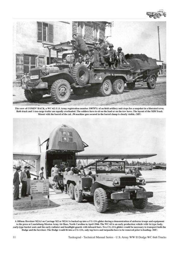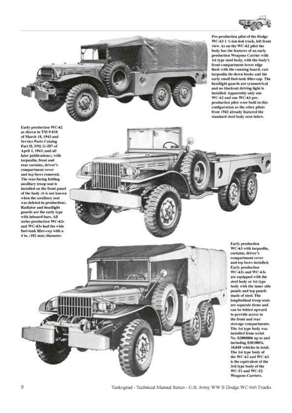 U.S. WW II Dodge 1 1/2-Ton 6x6 WC-62 & WC-63 Personnel & Cargo Trucks Autor: Michael Franz 48 Seiten (englischer Text) mit 2 Farbphotoseiten und über 150-200 schwarz-weiß Photos, Skizzen und Zeichnungen Im Heft Nr. 6031 der Technical Manuals Serie von Tankograd Publishing hat man sich mit dem kleinen Bruder beschäftigt. Hier kommt der große Bruder mit doppelter Zuladung, gestrecktem Fahrwerk und dritter Achse. Am Anfang erfährt man etwas über die Geschichte und Entwicklung des Fahrzeugs inklusive technischer Daten und Produktionszahlen. Die folgenden 23 Seiten zeigen Fotos aus der Erprobung und von Einsätzen im 2. Weltkrieg und auch dem Korea Krieg. Dabei stößt man auf interessante Aufnahmen von WC-62/63 z.B. beim Schlepp einer P-47 Thunderbolt, einer umgebauten Version mit Beobachtungsplattform oder als Truppenbetreuungsfahrzeug. Verschiedene Schlepp- und Beladungszustände liefern Dioramenideen. Der französischen Wüstenversion aus der Nachkriegszeit werden 2 Extrabildseiten gewidmet. Es wäre kein Technical Manual, wenn es sich nicht mit der Technik genauer befassen würde. Daher gibt es massenhaft Skizzen, Fotos und Beschreibungen des Fahrerraums und seiner Instrumente und Bedienelemente. Motor, Kraftübertragung und Fahrwerk sind ebenfalls sehr detailliert behandelt. Bei einem "Rundgang" um das Fahrzeug werden Anbauteile wie Abschlepphaken, Seilwinde und Werkzeuge gezeigt. Auch der MG Drehring M50 fehlt nicht. Bevor die Funkausstattung dran ist, gibt es noch ein paar Aufnahmen von Prototypen mit cal. 50 Zwillingslafette, Raketenwerfer T75 und als vollgepanzerte Version. Zu einem günstigen Preis bekommt man viele wertvolle Informationen. Direkt ab Verlag zu einem Preis von EUR 11,95 (zzgl. Versandkosten) erhältlich! |