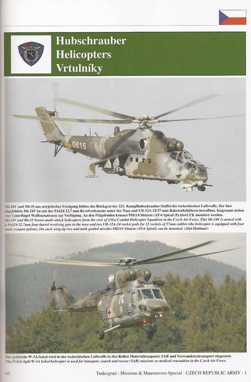 Die tschechische Armee hat in den letzten Jahren eine interessante Entwicklung durchlebt. Nach dem Ende Warschauer Paktes orientiert sich die Tschechei in Richtung NATO. Daraus resulierte ein in Europa einmaliger Fuhrpark. In einer zweiteilgen Publikation der Missions & Manouevres-Reihe wird dieser heterogene Fuhrpark vorgestellt. Mit dem Sonderband No. 7010 - Czech Republic Army, Fahrzeuge der mordernen Tschechischen Streitkräfte (Teil 1) startet die Reihe.