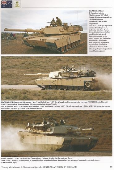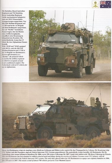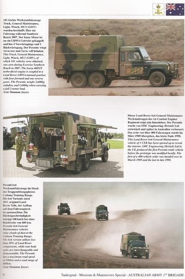 Die australische 1st Division hat drei Brigaden, wobei die 1st Brigade die mechanisierte Hauptstreitmacht der australischen Landstreitkräfte bildet. Das Heft No. 7012 - Australian Army 1st Brigade der Reihe 'Mission and Manoeuvres' wirft einen interessanten Blick auf den Fuhrpark dieses Truppenteiles der Armee aus 'down under'.