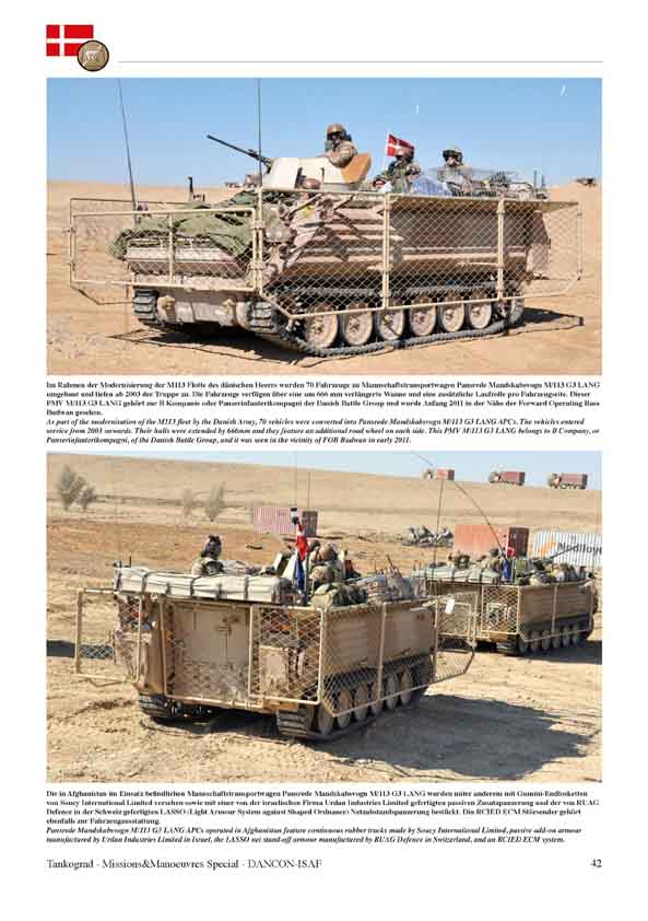 Dieses Heft enthält zahlreiche Farbfotos und informative Bildunterschriften zum gesamtenFuhrpark der von der Danish Battle Group eingesetzten Fahrzeuge. Dabei finden sich Kampf- und Schützenpanzer, LKW, Patrouillenfahrzeuge, Pioniergerät und Logistikfahrzeuge.