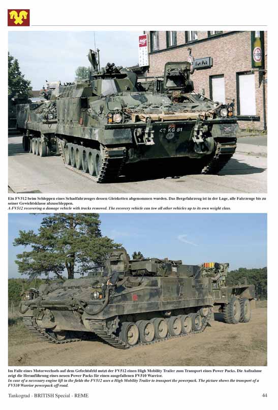 Dieses tolle und informative Heft behandelt im Schwerpunkt die Fahrzeuge des 2. Battalion REME. Auf 64 Seiten mit 130 Farbfotos und fünf Grafiken erhalten wir reichlich Informationsmaterial über die Geschichte, Gliederung, Aufgaben und Einsatzbereich der REME als Einsatzunterstützung der 7th Armoured Brigade. Der gesamte "Fuhrpark" dieser Einheiten wird im Foto mit Infotexten dargestellt. Jede Menge dieser Bilder zeigen die Mechaniker der REME mit ihren Fahrzeugen bei Instandsetzungsarbeiten und Bergeeinsätzen. Dazu finden sich immer kurze Beschreibungen der abgebildeten Fahrzeuge und Tätigkeiten. Auch ganz besondere "Schmankerls" sind dabei. Zum Beispiel Bergepanzer im Fleckentarnanstrich mit Reaktivpanzerung in Wüstentarnfarbe, Motorenwechsel ( Power Pack changing ) bei verschiedenen Panzerfahrzeugen, Bergungsszenen von Rad- und Kettenfahrzeugen und vieles mehr. Das gesamte Aufgabenspektrum der REME wird hier in Bild und Wort beschrieben. Durchgehend deutscher Text mit englischer Übersetzung. Für die Fans der modernen britischen Armee bietet dieses Heft reichlich Anregungen zum Modell- und Dioramenbau. Zum Preis von 14,95 EUR kann das Heft direkt über den Verlag bezogen werden