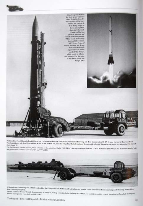 Das 18. Heft der British-Special-Reihe von Tankograd beschäftigt sich mit der Artillerie zum Verschießen von Atomgranaten in der britischen Armee im kalten Krieg. Wie immer wird mit einer Einleitung angefangen, welche dem Leser einen Überblick über die Nuklearartillerie gibt. Und schon geht es mit der Corporal los. Diese Rakete wurde Ende der 50er Jahre eingeführt und weiß besonders durch ihre teilweise sehr kuriosen Begleitfahrzeuge zu gefallen. Hier sei besonders das Erector Vehicle zu nennen, mit dem die Raketen aufgestellt wurden. Als zweites ist die Blue Water Rakete dran. Diese wurde allerdings ein Opfer der britischen Sparzwänge und die Honest John übernahm die Aufgabe der nuklearen Abschreckung. Trotzdem gibt es einige Fotos der Prototypen. Womit wir auch schon bei der Honest John wären. Gefolgt von der Rohrartillerie, welche aus M109, M110 und M115 bestand. Den Schluß bildet das Raketensystem Lance. Hier werden die vielen Fotos noch durch Zeichnungen aus den Manuals ergänzt. Die unzähligen Fotos sind vornehmlich schwarz-weiß, was aber in deren Alter begründet liegt. Einige wenige Farbfotos finden sich auf der Rückseite. Ein sehr kompletter Überblick mit vielen Fotos z. Teil auch aus Kasernen in Deutschland für etwa 15 EUR. Da gibt’s absolut nix zu meckern! Dies Heft schlägt ein wie 'ne Scud! ;-)