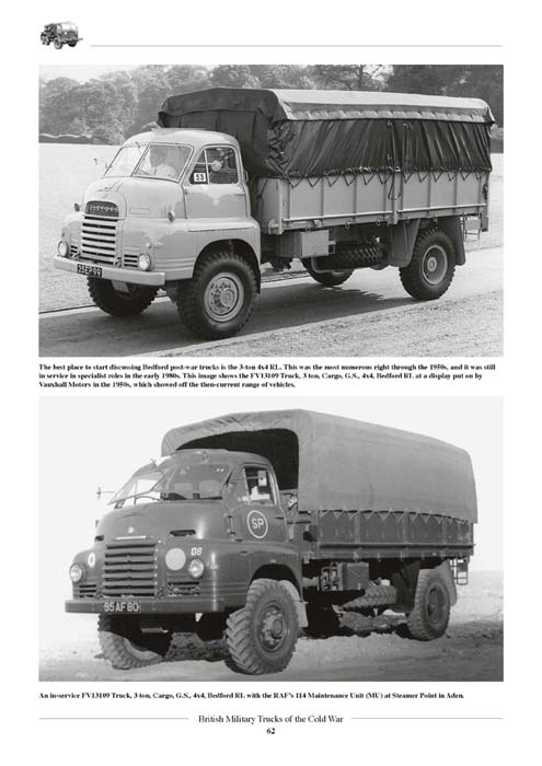 Jeden einzelnen LKW hier aufzulisten würde den Rahmen sprengen, aber die LKW Hersteller, die hier behandelt werden, sind - AEC - Albion - Austin - Bedford - Commer - Foden - Ford - Humber - Land Rover - Leyland - Morris - Scammell - Thornycroft. Danach folgen einzelne, verschiedene LKW und ein Kapitel nur mit den Farbfotos.