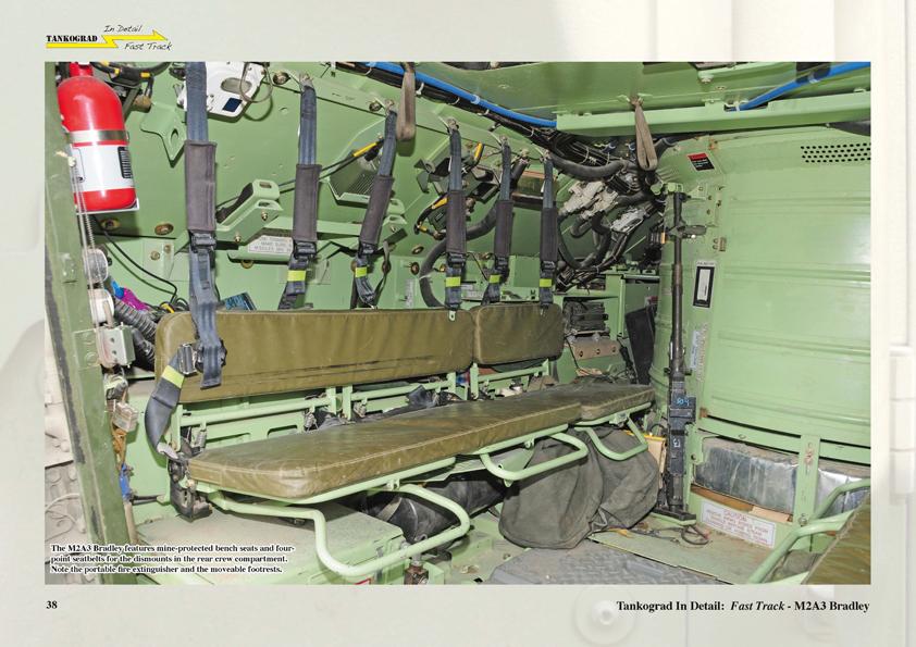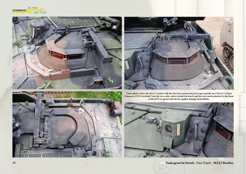 M2A3 Bradley Das dritte Heft im A4 Querformat der Fast Track Serie aus dem Hause Tankograd befasst sich mit dem M2A3 Bradley. Nach dem 2-seitigen Einstieg zum Bradley gibt es "voll auf die Augen", denn die Fast Tracks sind reine Bildbände! Gestochen scharfe und große Farbaufnahmen wissen hier zu begeistern. Jedes Bild ist mit entsprechendem Text versehen, so dass man immer weiß, was man da grad sieht. Gezeigt werden Bradleys von allen Seiten in NATO 3-Farbtarnung mit sandfarbenen Farbtupfern in Form der IFF Paneele während einer Übung, teils ohne und teils mit Außenbeladung mit Ausrüstungsmaterial wie Rücksäcken, Kartons, S-Drahtrollen, MILES System etc. Nahaufnahmen lassen kein Detail aus, egal ob es sich um Optiken, Winkelspiegel, Kanone, Gurte, Werkzeuge und deren Halterungen, Blinker, Scheinwerfer oder Laufwerk handelt. Einzig die Unterseite wird nicht gezeigt J. Die Detailaufnahmen gliedern sich in Wanne, Laufwerk (Federung), IFF Paneele, Turm und Bewaffnung. Bevor man einen Blick ins Innere des Kampf- und Fahrerraums werfen kann, gibt es einen Blick auf den Motor. Wer sich also ausgiebig an einem Bradley Modell mit allen Innen-, Außendetails und Farben austoben möchte, wird großen Gefallen an diesem Heft finden. Limitierte Auflage 999 Stück Anzahl Fotos und Illustrationen: 86 Farbfotos