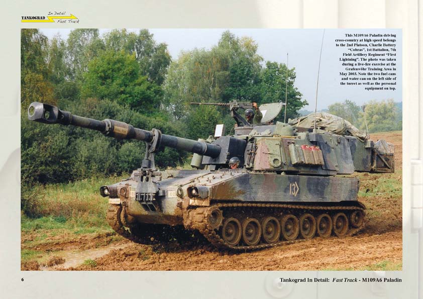 M109A6 Paladin Das neue Heft der Serie In Detail befasst sich mit der Panzerhaubitze M109 A6 Paladin der U.S. Army. Auf 40 Seiten im Format DIN A4 quer wird diese Haubitze so ausführlich beschrieben dass eigentlich keine Frage unbeantwortet bleiben dürfte. Wenn man denn englisch kann ... der Text zur Bildbeschreibung ist im Heft nämlich nur in englischer Sprache vorhanden. Das Heft beginnt mit einem einführenden Text und beschreibt die Geschichte / Entwicklung der Panzerhaubitze M109. AnschlieÃend folgen groÃformatige Vollansichten einer M109 A6 im Nato-Fleckentarnanstrich auf dem Truppenübungsplatz Grafenwöhr aus dem Jahr 2003 und ein Foto aus dem Irak, Mai 2004. Ab Seite 11 geht es dann weiter mit einer sandfarbenen Haubitze, mit Vollaufnahmen und Detailfotos wird das Fahrzeug gezeigt und alle Fotos sind mit informativen Texten ergänzt. Front, Heck, Turm, Laufwerk, Erdsporne, Antirutschbeläge, Anbringung von Werkzeugen, Zubehör und Ausrüstung werden sehr gut beschrieben. Auch vom Innenraum der Haubitze sind reichlich Fotos vorhanden. Das einzig fehlende sind noch Fotos vom geöffneten Motorraum / Motor. Diese Fotos würden dem ganzen jetzt noch die Krone aufsetzen, aber eventuell würde dadurch auch der Rahmen und der Verkaufspreis des Heftes gesprengt. Die M109 A6 ist ja bekanntlich von mehreren Herstellern als Modell im MaÃstab 1:35 erhältlich, es gibt bereits diverse Zubehör-, Ergänzungs- und Umbausätze und mit diesem Heft dürfte dem geneigten Modellbauer ausreichendes Referenzmaterial vorliegen um ein möglichst originalgetreues Modell zu bauen. Von daher⦠Klare Kaufempfehlung! - Reiner Bildband (Einsatzfotos und Walkaround) mit kurzem englischem Text