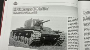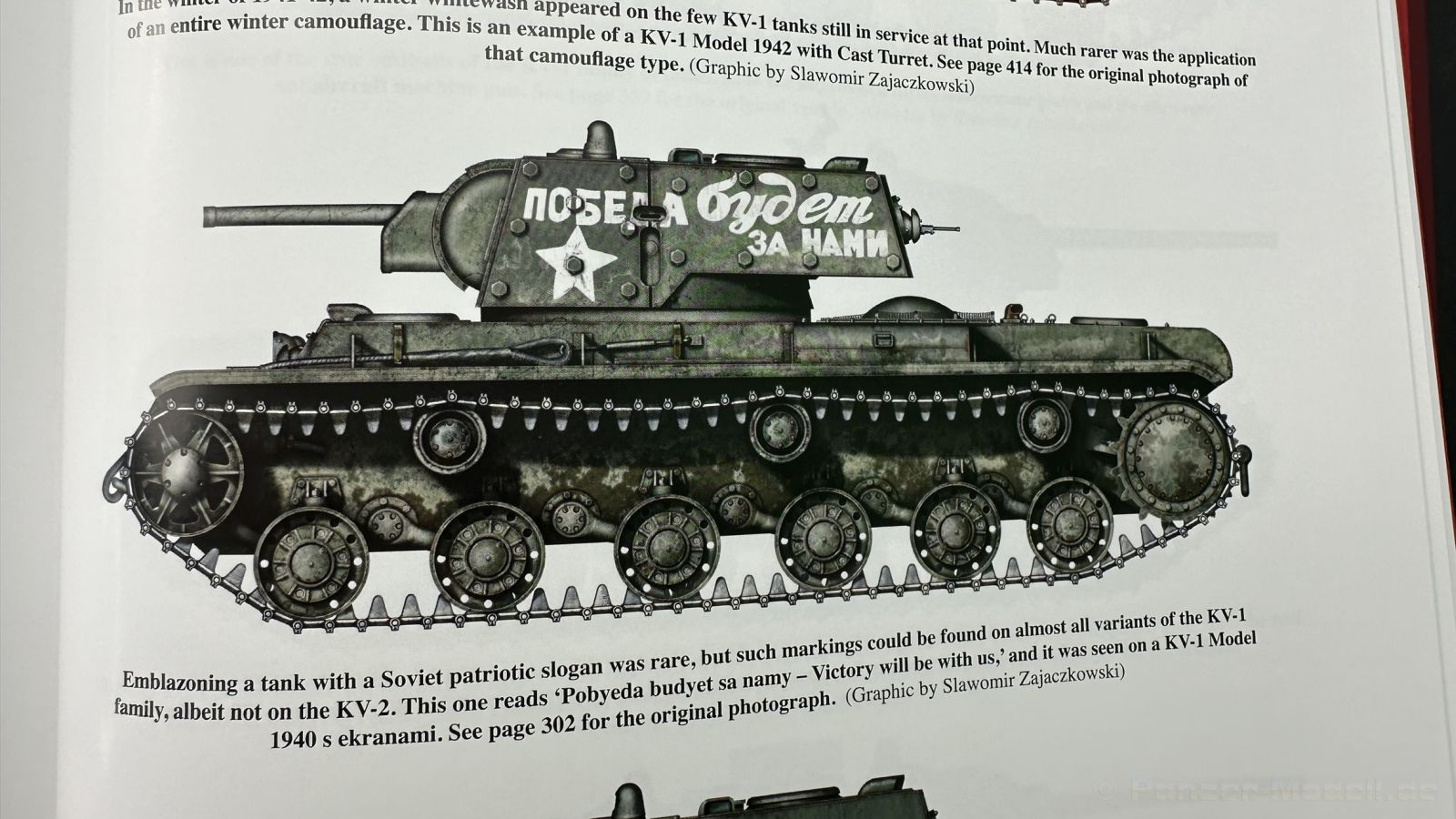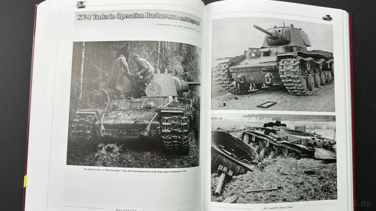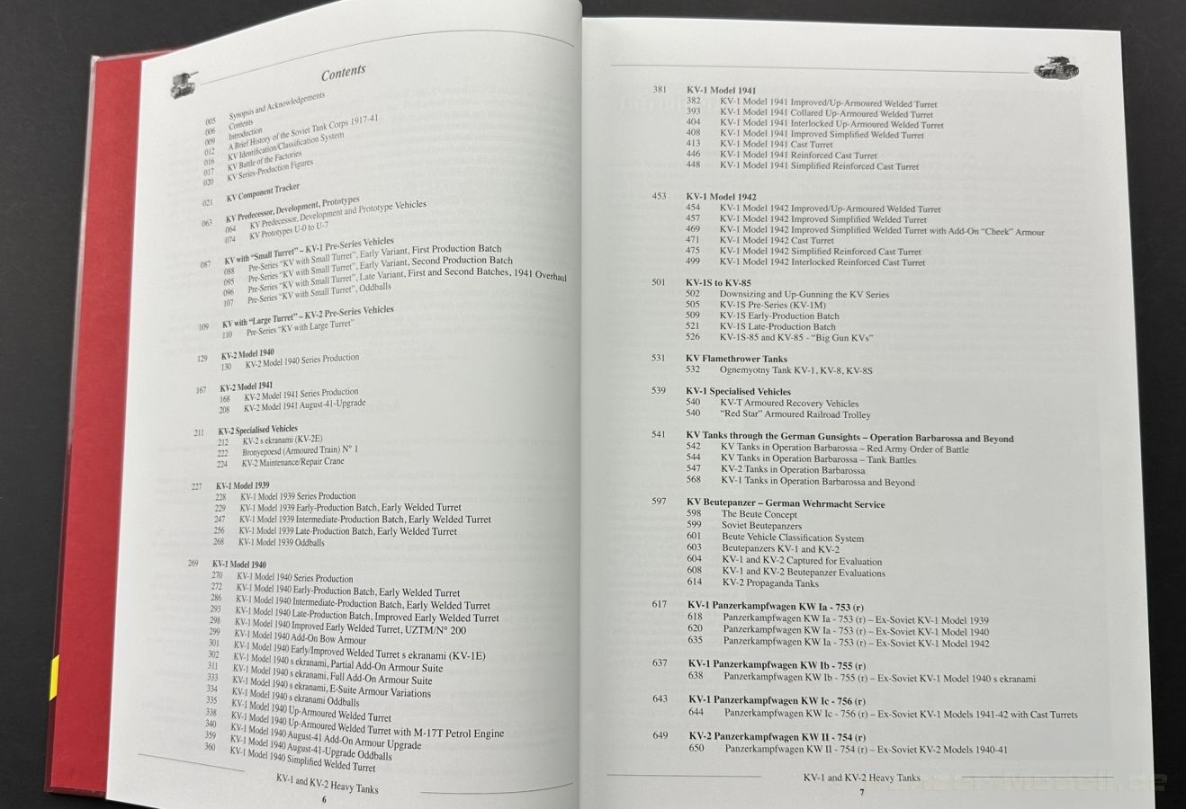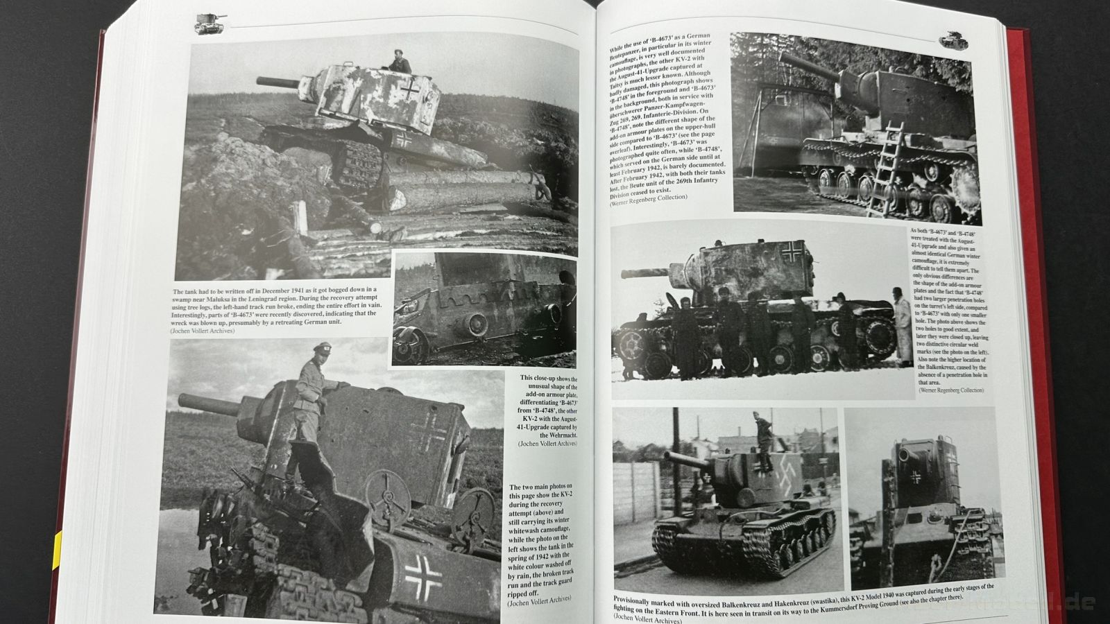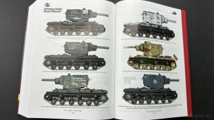 Hier habe ich das ultimative Nachschlagewerk zum Thema KV Panzer zur Vorstellung. Aber kommen wir zuerst zu den Eckdaten In dem Festeinband finden wir 728 Seiten, durchweg auf Hochglanzpapier mit 1030 Bildern, dazu kommen etliche Zeichnungen, Tabellen, einige Farbbilder und Colourprofile. Erwähnenswert ist dass die Zeichnungen in 1:35 angefertigt worden sind, das erleichtert dem geneigten Modellbauer doch erheblich seine Recherche bzw. Umbauten oder Korrekturen. Die Sprache ist leider ausnahmslos in Englisch gehalten, was dem begrenzten deutschen Markt zu Grunde zu führen ist. Wo wir bei begrenzt sind, schnell sein lohnt sich, das Buch ist auf 999 Exemplare limitiert, die Anzahl wird strikt von Herrn Vollert eingehalten. Das Buch gliedert sich wie folgt, nach der obligatorischen Danksagung folgen 3 Seiten, die den Inhalt umschreiben, das ist schon einmal eine Ansage! Es folgen insgesamt 25 Kapitel die Entstehungsgeschichte der KV-Serie wird eingehend beleuchtet sowie die einzelnen Typen, Prototypen, KV1 Model 1939,1940,1941, 1942, die KV2 Serie, KV-1S bis 85mm Version, Flammwerfer Varianten. Spezialaufbauten und natürlich deutsche Beutepanzer werden hier eingehend beleuchtet. Das Buch ist nicht nur für den Militärhistorisch Interessierten von Belang sondern gerade der Modellbauer wird hier mit Maßstäblichen Zeichnungen in 1:35 bedacht. Das hilft sein Modell den historisch korrekten Feinschliff zu verpassen. Der Beute Panzer Teil zieht sich durch diverse Kapitel, wirklich spanend beschrieben und startet mit der Sichtung durch dt. Truppen, die Bekämpfungsmöglichkeiten und natürlich die Erprobung in Deutschland sowie die Umbauten, die durch deutsche Truppen vorgenommen worden sind. Was mir bisher nicht bekannt war, dass es eine Reihe von Dummies gegeben hat, um Einheiten zu trainieren oder einfach um den Gegner zu verwirren. Abgerundet wird das Buch von vielen Colorprofiles aus der Feder von Felipe Rodna, neben russischen Tarnschemen, finden wir auch Tarnungen der Wehrmacht. Abschließend lässt sich sagen, aufgrund der immensen Datenlage, der meist scharfen Bilder, Tabellen, Profilen und der Aufarbeitung der einzelnen und jemals Entwickelten Varianten der KV-Reihe ist es DAS Buch zum Thema. Ich denke aufgrund der limitierten Auflage und des hohen Preises wird das Buch sicherlich noch an Wert gewinnen. Einziges, minimales Manko, in Deutsch wäre der Lesefluss doch ein wenig leichter gefallen