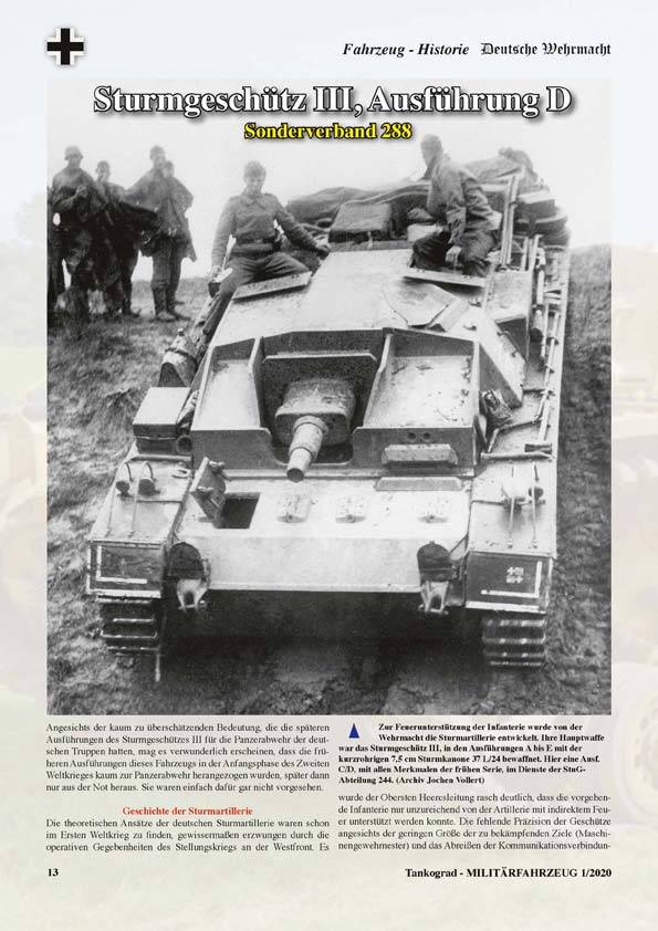Für die Wehrmachtsfreunde gibt es einen mehrseitigen Bericht zum Sturmgeschütz III Ausf.D vom Sonderverband 288, inklusive aktueller Fotos eines restaurierten StuG III Ausf.D.