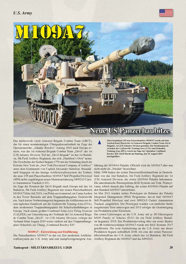 Auch sonst strotzt diese Ausgabe mit Berichten zu den neuesten Fahrzeugen aus der Industrie und in einzelnen Armeen - darunter z.B. die brandneuen M109 A7 Panzerhaubitze der US Armee, die auf einem ganz neuen Fahrgestell basiert. Das ebenfalls neue M992 A3 CAT wird ebenfalls vorgestellt.