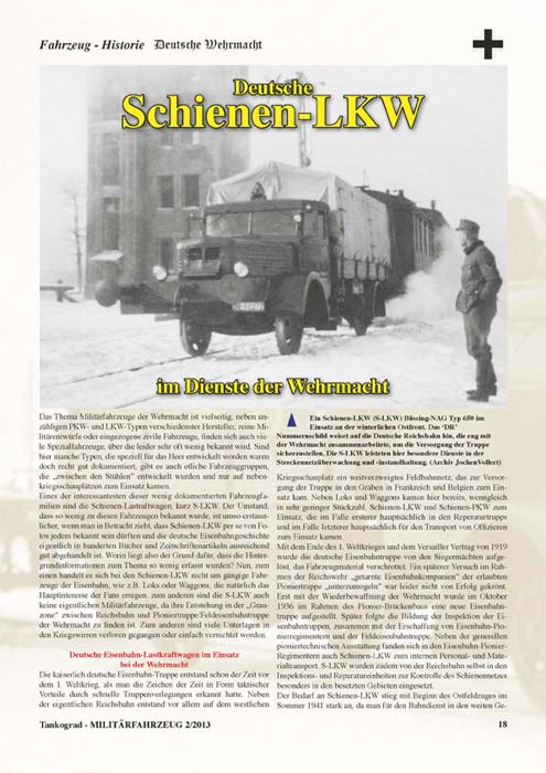 Auch die Interessenten des 2.WK kommen auf ihre Kosten, denn der bericht zu den Schienen LKW der Wehrmacht ist sehr interessant und dürfte vielleicht Anlass für so manchen Umbau in 1:35 werden!?