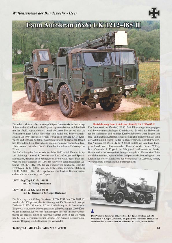 In dieser Ausgabe der Militärfahrzeug finden wir wieder eine interessante Zusammenstellung an Themen mit guten Berichten und entsprechenden Fotos. Quer durch alle Militärfahrzeugbereiche ist für jeden etwas dabei. Anbei das Inhaltsverzeichnis:
