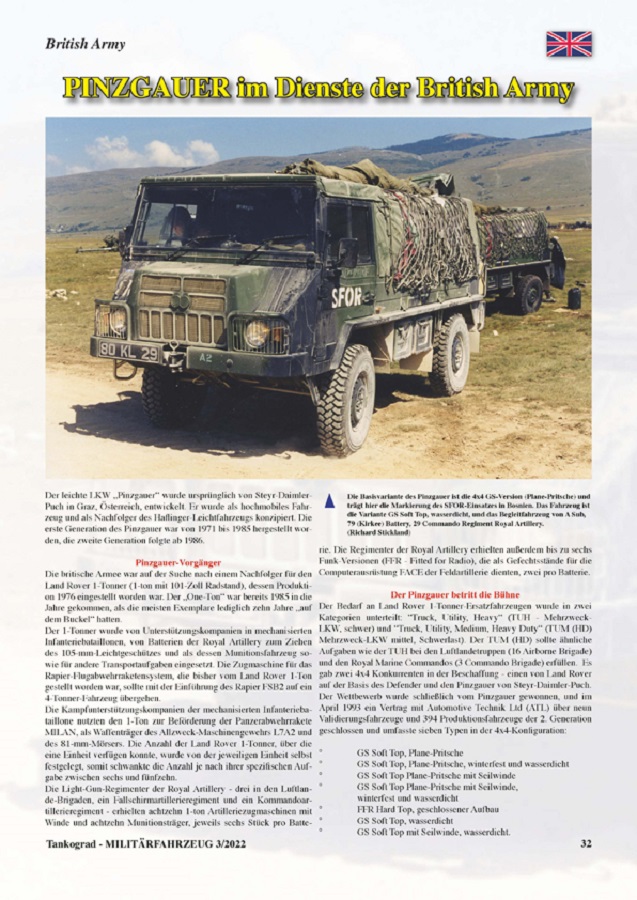 In dieser Ausgabe der Militärfahrzeug finden wir wieder eine interessante Zusammenstellung an Themen mit guten Berichten und entsprechenden Fotos. Quer durch alle Militärfahrzeugbereiche ist für jeden etwas dabei. Anbei das Inhaltsverzeichnis: