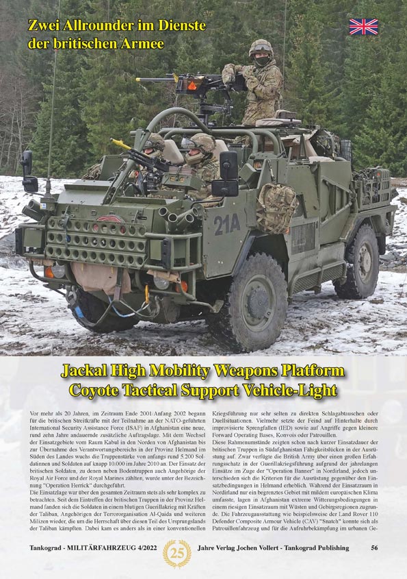 Ansonsten weitere interessante, kürzere Berichte - darunter auch noch was für die Fans der deutschen Armee des 1.Weltkriegs oder auch Details zu, britischen Jackal TSV.