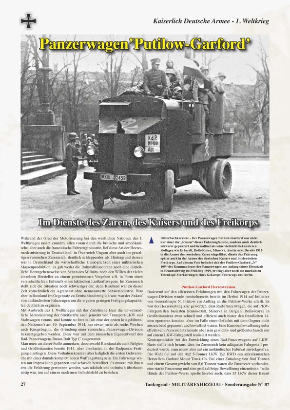 Etwas weiter zurück in der Zeit begiibt sich der Artikel zum Panzerwagen Putilov-Garford, der gerade durch den aktuell erschienenen Modelbausatz von Interesse sein dürfte.