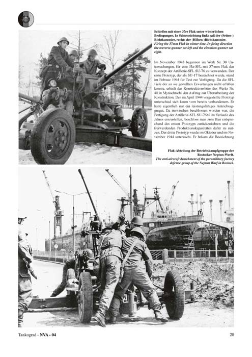 Etwas umfangreicher ist das Kapitel zur 37mm Flak M39. Hier geht es wieder um Technik, Einsatzgeschichte und Varianten in der NVA. Darüberhinaus gibt es einen ganzer Haufen sehr schöner Fotos aller möglichen Flaks sowohl einzeln als auch auf Fahrzeugen.