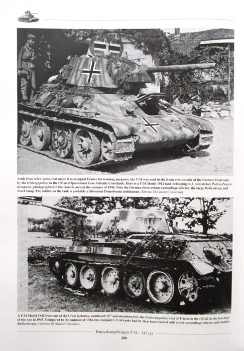 Es folgen knapp 30 Seiten mit massiv viel Informationen in Textform unf guten Fotos über Beutefahrzeuge bei der Wehrmacht, dem bedarf an Fahrzeugen an der Ostfront durch die steigenden Verluste, das Klassifizierungssystem der Deutschen bezüglich des beutematerials und der dazugehörigen "Kennblätter fremden Geräts". Hier wurd dann auch auf die Bezeichnungen und Nummerierungen dieser Beutefahrzeuge eingegangen und so erklärt sich dann auch der im Titel verwendete Ausdruck des T34 747(r). Desweiteren wird recht ausgiebig auf die Beutepanzer aus anderen Kriegsnationen wie Frankreich, England, Amerika, Polen und Italien sowie deren Verwendung im deutschen Heer eingegangen. Etwas ausführlicher geht es dann auch noch um die anderen Beutepanzer aus Russland bevor es dann zum eigentlichen Thema des T-34 kommt.