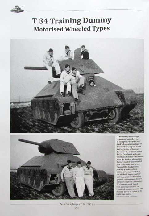 Rund 80 seiten beschäftigen sich dann ausgiebig mit der unfassbaren Anzahl und Vielfalt der T-34 Attrappen, die die Deutschen geschaffen haben um den Umgang mit dem T-34 zu trainieren - von einfachen Holzmodellen, die gezogen wurden bis zu Vollkettenfahrzeugen. Aber auch die Geschichte der Panzerattrappen an sich wird in diesem Kapitel beleuchtet - vond er zeit der kaiserlichen Armee bis zum 2.weltkrieg.