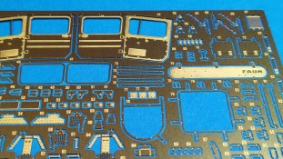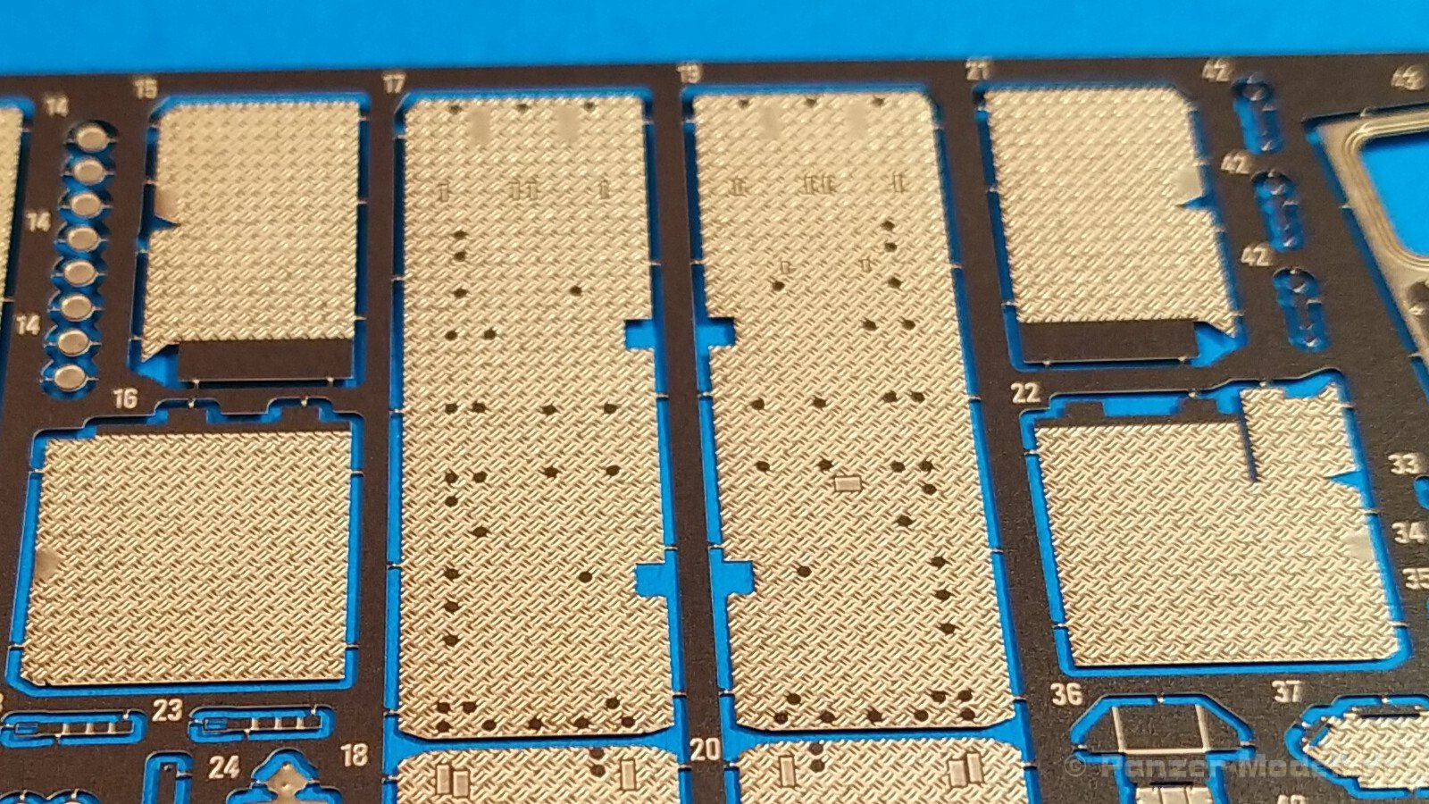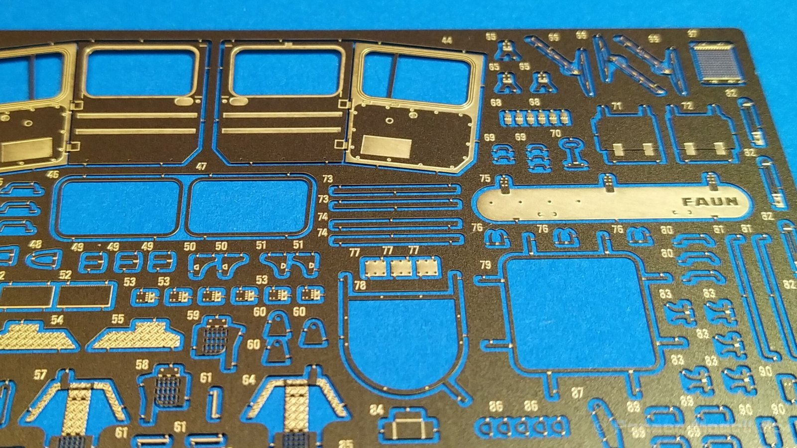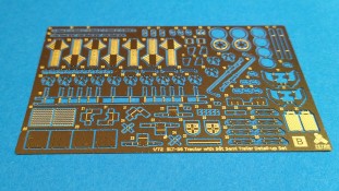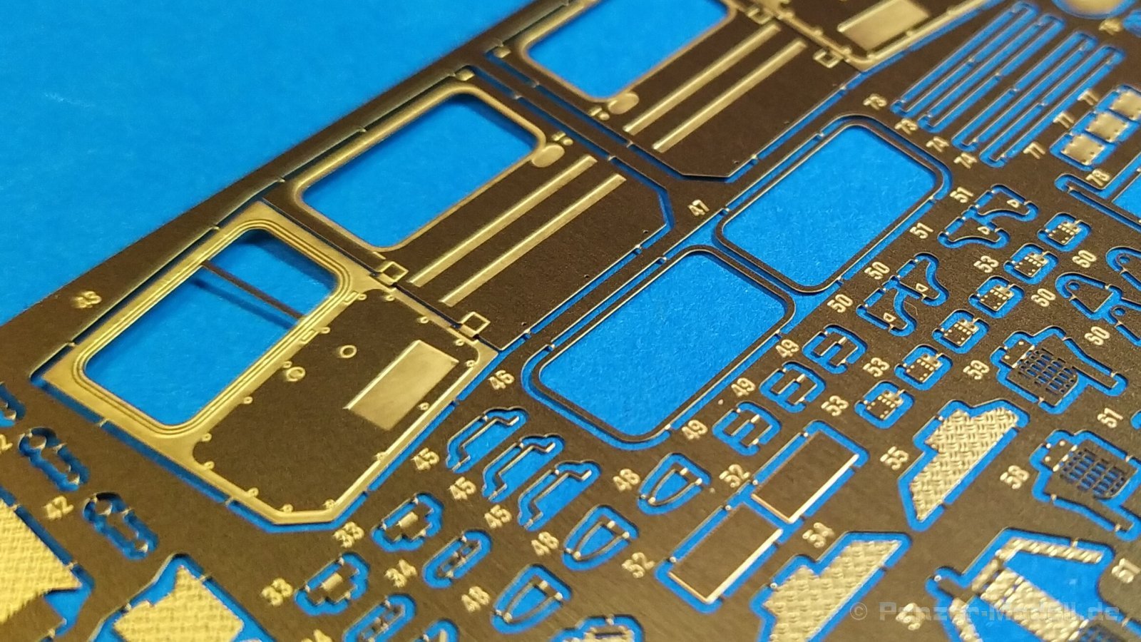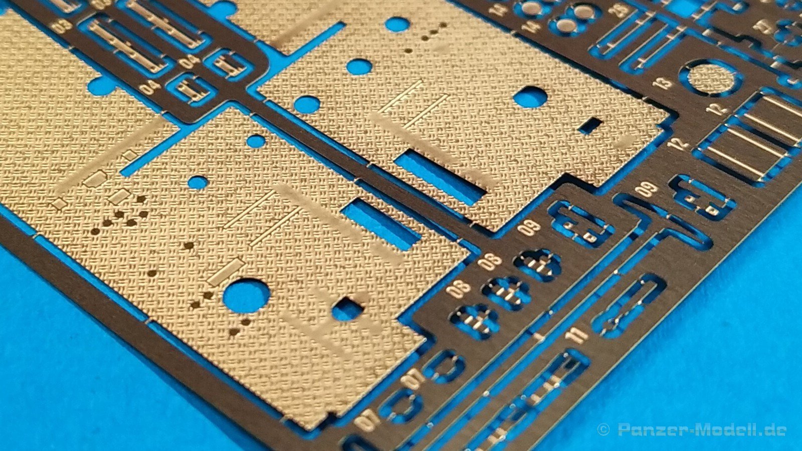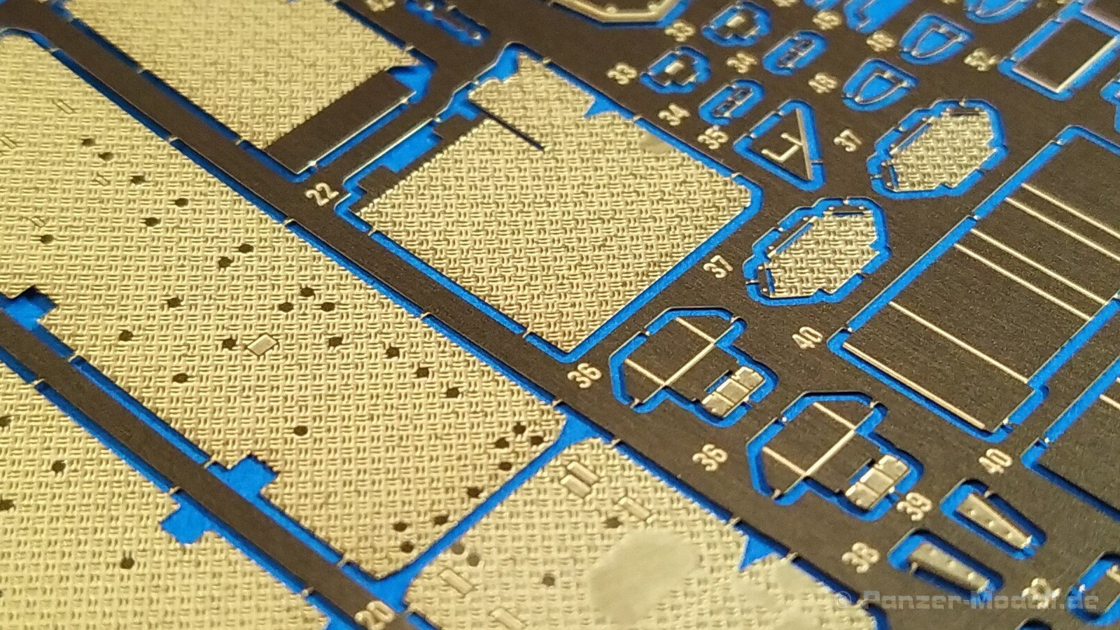 Tetra Model Works ist ein koreanischer Hersteller und bekannt für hochqualitative Fotoätzteile und Zubehör in verschiedenen Maßstäben. Im Maßstab 1:72 ist unter der Nr. ME-72029 ein Detailierungssatz für den Trumpeter Bausatz Nr. 07196 des Bundeswehr Panzertransporter Faun SLT-56 „Franziska“ erschienen. In einer pappverstärkten Klarsichtverpackung wird folgender Inhalt geliefert: - 1 zweiseitige farbige Bauanleitung (ca. DIN A3) - 1 Fotoätzplatine „groß“ (185 x 64mm) mit diversen Bauteilen - 1 Fotoätzplatine „klein“ (87 x 55mm) mit diversen Bauteilen - 1 Klarsichtbogen (45 x 15mm) mit 4 vorgestanzten Türfenstern - 1 Kette brüniert Die beiden enthaltenen Fotoätzplatinen weisen viele sinnvolle Bauteile auf. Alle Fotoätzteile sind durch die Bank gut durchdacht und fein ausgeführt. Beide Platinenstärken sind nicht zu dünn oder zu dick. Ich würde sie als maßstäblich passend bezeichnen. Auf der großen Platine lassen sich unter anderem Türen der Fahrerkabine finden, um diese geöffnet darstellen zu können. Dazu weisen diese durch einen mehrlagigen Aufbau auch eine Innendetaillierung auf. Einen weiteren großen Bereich nehmen die Kotflügel bzw. Trittbleche auf der Platine ein. Hier gilt es die Plastikteile des Bausatzes durch beiliegende fein gearbeitete Riffelbleche auszutauschen. Die Struktur wurde stimmig umgesetzt und weiß sehr zu gefallen. Viele weitere Teile wie durchbrochene Auftritte, Lufteinlässe, feine Haken, Scheibenwischer etc. sorgen für ein Plus an Detailierung an dem Plastikbausatz. Auch an Unterlegkeile oder das bundewehrtypische Leitkreuz wurde u. a. auf der kleinen Platine gedacht. Für die Türenfenster liegt ein dünner klarer Bogen Plastikmaterial mit bereits vorgestanzten Fensterteilen dem Detaillierungsset bei. Bei so einem Fahrzeug ist die Verzurrung des Transportgutes ein entscheidendes Detail. Dazu liegt dem Zurüstsatz ein Stück brünierte Kette bei, das in Kombination mit fotogeätzten Haken ein sehr filigranes Bauteil darstellt. Die annähernd DIN A3 große beiliegende Bauanleitung zeigt sehr gut auf Vorder- und Rückseite anhand von Zeichnungen und Fotos des fertigen Modells die Anbringung der enthaltenen Teile. Dabei wird deutlich durch roteingefärbte Bereiche auf abzutrennende Bauteile des Grundbausatzes hingewiesen, die durch detaillierte Fotoätzteile ersetzt werden müssen. Auch die einzelnen Arbeitsschritte zum Biegen der Teile werde durch Piktogramme verständlich erläutert. Mein Fazit: Dank Tetra Model Works kann man mit diesem Zurüstsatz noch mehr an Detailierung aus dem Trumpeter-Bausatz herausholen. Eine wirklich sinnvolle Zusammenstellung an verschiedenen Teilen wird uns hier präsentiert. Die enthaltenen Teile sind fein umgesetzt und wirklich gut durchdacht. Der Anfänger wird sicherlich vor dieser Art von umfangreichem Fotoätzteilbogen zurückschrecken. Das Set richtet sich daher eher an erfahrene Modellbauer mit entsprechendem Werkzeug. Der Preis für die Detaillierung und Qualität ist absolut ok und machen ihn für Freunde moderner Bundeswehrfahrzeuge daher zu einer absoluten Kaufempfehlung!
