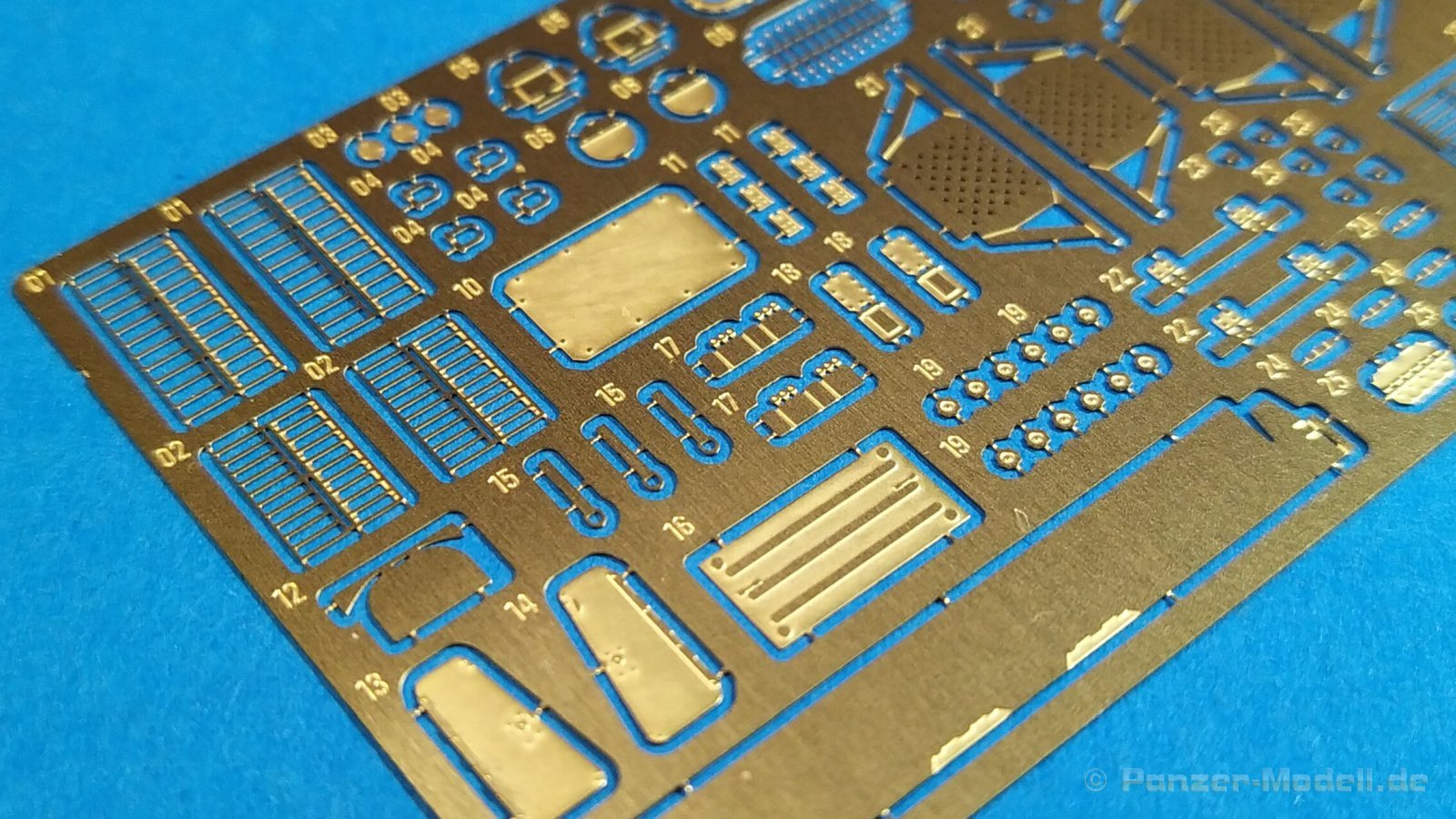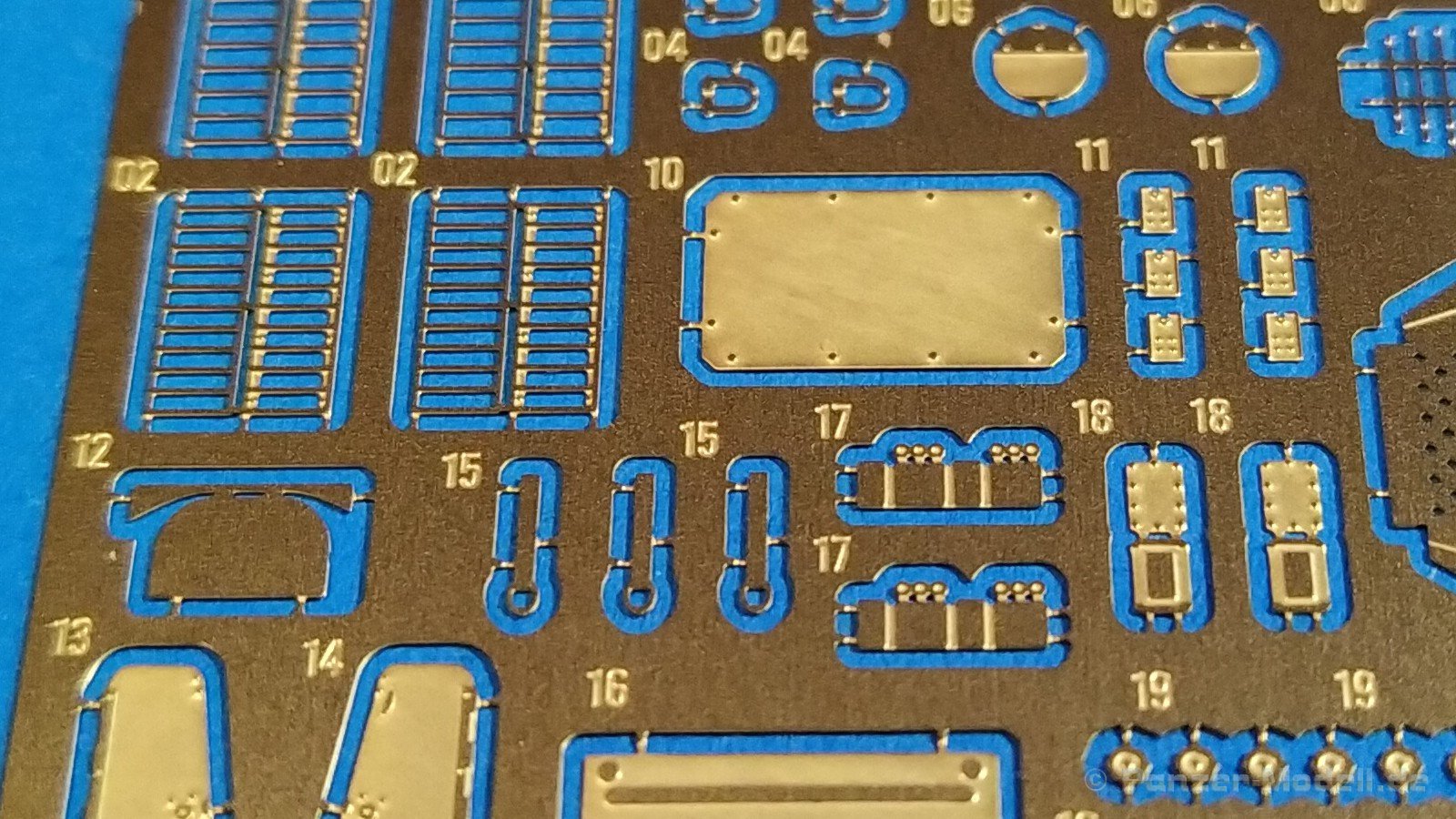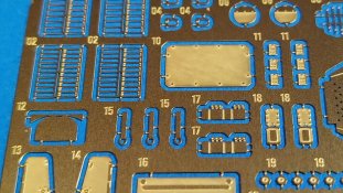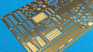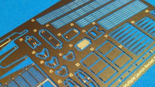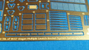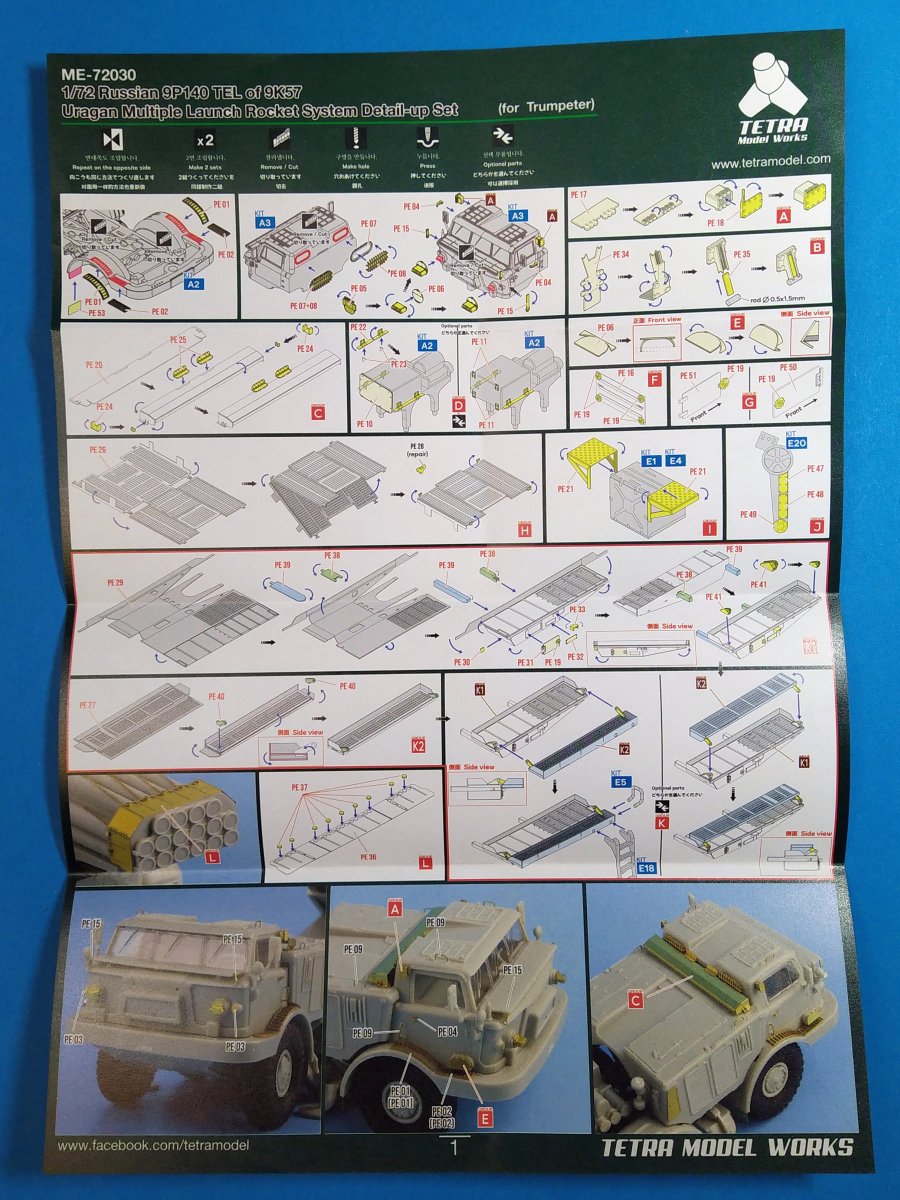 Der koreanische Hersteller Tetra Model Works hat im Maßstab 1:72 unter der Nr. ME-72030 ein Detailierungssatz für den Trumpeter Bausatz Nr. 07180 des russischen Raketenwerfers 9P140 TEL des 9K57 Uragan Raketensystems herausgebracht. In einer pappverstärkten Klarsichtverpackung wird folgender Inhalt geliefert: - 1 zweiseitige farbige Bauanleitung (ca. DIN A4) - 1 Fotoätzplatine (180 x 42mm) mit diversen Bauteilen Auf der enthaltenen Fotoätzplatine finden sich viele sinnvolle Bauteile. Die Bauteile sind durch die Bank gut durchdacht und fein ausgeführt. Die Platinenstärke würde ich als maßstäblich passend bezeichnen. Sie ist nicht zu dünn oder zu dick. Einen großen Teil auf der Platine nimmt u.a. die Arbeitsplattform des Richtkanoniers ein. Einen weiteren großen Bereich nehmen die verschiedenen Verstrebungen an der Werferanlage ein. Hier gibt es einzelne Bandstahlteile und auch Lochbleche. Trittbleche mit Riffelmuster, Klappen, Abdeckungen, etc. sind weitere Bauteile auf der Platine. Hier gilt es die Plastikteile des Bausatzes durch beiliegende fein gearbeitete Bleche auszutauschen. Die Struktur wurde stimmig umgesetzt und weiß sehr zu gefallen. Viele weitere Teile wie durchbrochene Auftritte, Lufteinlässe, feine Haken, etc. sorgen für ein Plus an Detailierung an dem Plastikbausatz. Die annähernd DIN A4 große beiliegende Bauanleitung zeigt sehr gut auf Vorder- und Rückseite anhand von Zeichnungen und Fotos des fertigen Modells die Anbringung der enthaltenen Teile. Dabei wird deutlich durch roteingefärbte Bereiche auf abzutrennende Bauteile des Grundbausatzes hingewiesen, die durch detaillierte Fotoätzteile ersetzt werden müssen. Auch die einzelnen Arbeitsschritte zum Biegen der Teile werde durch Piktogramme verständlich erläutert. Mein Fazit: Auch mit diesem Zurüstsatz schafft es Tetra Model Works noch mehr an Detailierung aus dem Grundbausatz von Trumpeter herausholen. Die Zusammenstellung der verschiedenen Fotoätzteile ist wirklich sinnvoll. Die enthaltenen Teile sind fein umgesetzt und wirklich gut durchdacht. Nicht für den Anfänger geeignet richtet sich das Set sicherlich eher an erfahrene Modellbauer mit entsprechendem Werkzeug. Der Preis für die Detaillierung und Qualität ist absolut ok und machen ihn für Freunde russischer Militärtechnik daher zu einer absoluten Kaufempfehlung!