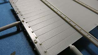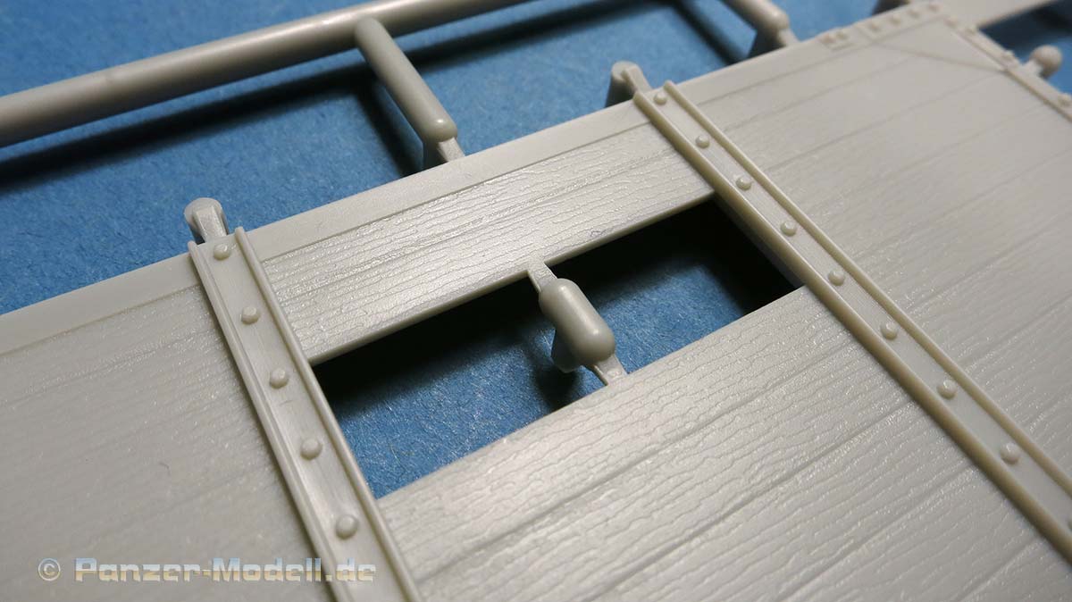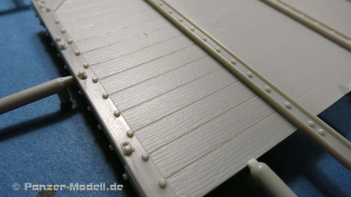 Die Bodenplatten werden auf dem Rahmen aufgebracht - diese bestehen aus zwei Großteilen, die exakt gleich sind. Die Darstellung der Bodenplanken sieht sehr gut und realistisch aus.