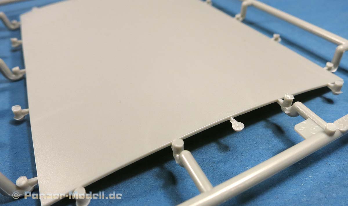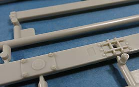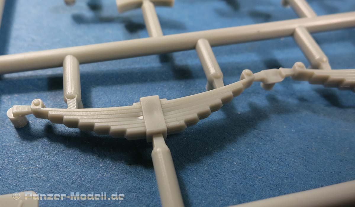 Auch die über den Achsen aussen angebrachten Blattfedern sind sauber und fein detailliert gespritzt, bis auf ein, zwei leichte Sinkstellen.