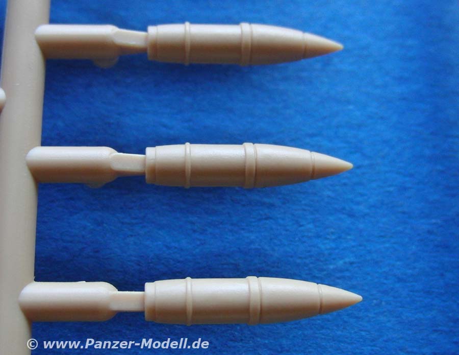 Ebenfalls erfreulich ist die Darstellung des Fahrerplatzes in seinen Grundzügen mit Sitz, Instrumenten und Bedienhebeln, wie auch eine gute Ausstattung des Kampraumes unter anderem mit recht schönen Granaten in Plastik.