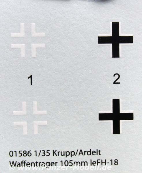 Der Decalbogen beinhaltet je zwei Balkenkreuze in zwei Versionen.