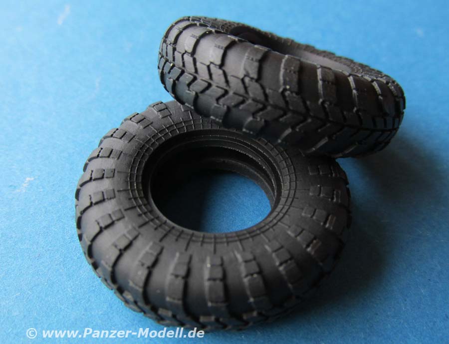 Die Reifen sind aus mittelhartem Vinyl und mit recht schönem Profil und auch detaillierten Reifenflanken. Herstelleraufdrucke sind nicht zu sehen, sind aber ggf. auch am Original gar nicht vorhanden.