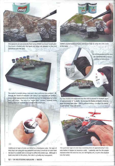 Insgesamt sind im Heft sechs Artikel die jeweils zwischen 6 und 10 Seiten umfassen. Dabei wird textlich als auch in Schritt für Schritt fotos gezeigt wie der jeweilige Modellbauer sein Modell mit den entsprechenden Effekten geschaffe hat.