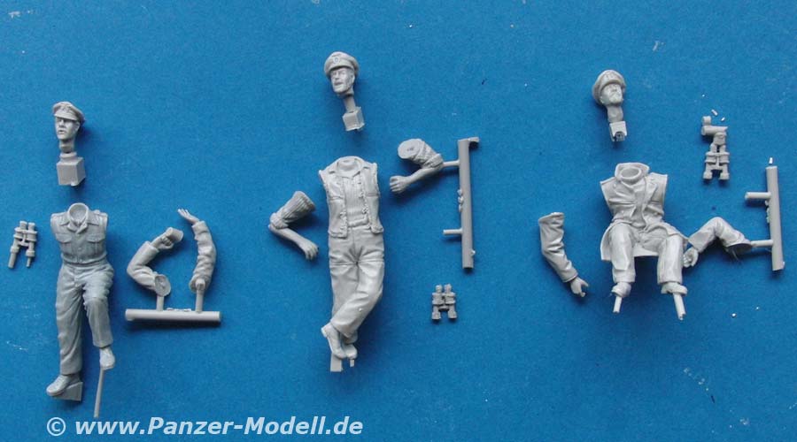 Die Darstellung der unterschiedlichen Uniform/Kleidungsteile ist wahrlich gut gelungen - hier sieht man offene Jacken, Rollkragenpullover, schiefsitzende Schirmmützen, usw. Dies verleiht den Figuren eine sehr gute Authentiziät - nur realistisch bemalen muss man noch selber.