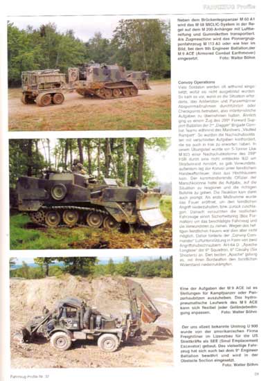 An Fotos finden sich sehr schöne Aufnahmen von vielen verschiedenen Fahrzeugen, wie etwaS-250 Shelter Carrier, M109 A6 Paladin, M998, M984 A1 Oshkosh Bergefahrzeug, M1113 ECV, M1025, M1026, M997 Ambulance, M 109 A3 Shop Van, M923 5t Truck, M35 A3, M944 A1, M928 A2, M931, M1070 HET, M977 HEMTT, M113 A3, M1068 A3, M88 A1, M978 Tanker, M60 A1 AVLB, M58 MICLIC, M9 ACE, Apache AH-64 D, M2A2 ODS Bradley, M1A1 AIM Abrams, usw..