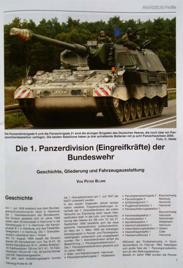 Im März 2009 ist Band 39 aus der Fahrzeug Profile Reihe mit dem Thema "Die 1.Panzerdivision (Eingreifkräfte) der Bundeswehr" erschienen.