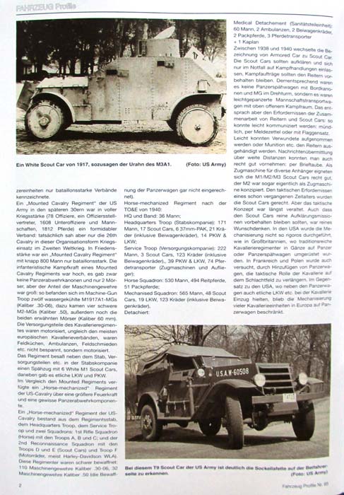 Das Heft beginnt mit einer historischen Einführung zum Scout Car und den Hintergründen der Beschaffung für die amerikanischen Kavallerieregimenter.