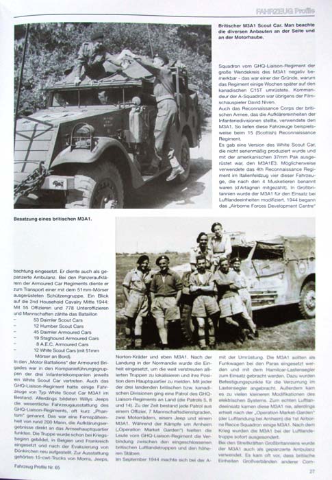 Insgesamt sind die Fotos des Scout Cars im Heft recht bunt gemischt mit historischen Fotos im Einsatz und aktuellen Fotos von restaurierten Fahrzeugen. Bei letzterem muss man achtgeben inwieweit diese noch Original sind. Aber prinzipiell sind diese schon sehr schönanzusehen.