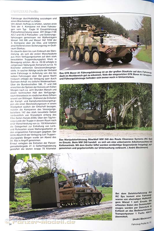 Den Großteil des Heftes machen aber die Fotos aus, die Mensch und Material der verschiedenen Truppen eindrucksvoll und in Aktion zeigt. Meist mit zwei Fotos pro Seite sind diese ausreichend groß und die Bildunterschirften klären über das Fahrzeug und ggf. Besonderheiten auf.