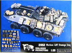 Unter der Nummer 2052 hat der amerikanische Hersteller Verlinden hier einen Zubehörsatz für den LAV auf den Markt gebracht, der die Ausrüstung von Fahrzeugen aus dem Irak ermöglicht.