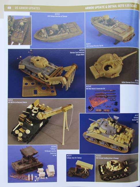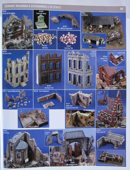 Das Sortiment des Katalogs erstreckt sich über Figuren 1:35, 1:32, 90mm, 120mm, 200mm, Büsten, Diorama Basen und Zubehör in 1:72, 1:48 und 1:35, PE teile 1:15 und kleiner, Fahrzeug Zubehör udn Umbausäte im Maßstab 1:35, usw. usw.