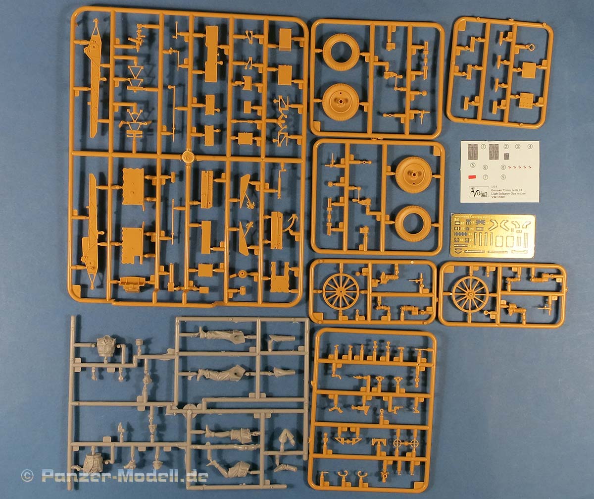 Dieses recht kleine geschütz ist in diesem bausatz mit einer überschaubaren Menge an Teilen baubar und dankenswerter Weise hat Vision Models auch noch einen Spritzling für zwei Figuren beigelegt um das Ganze etwas zu beleben.